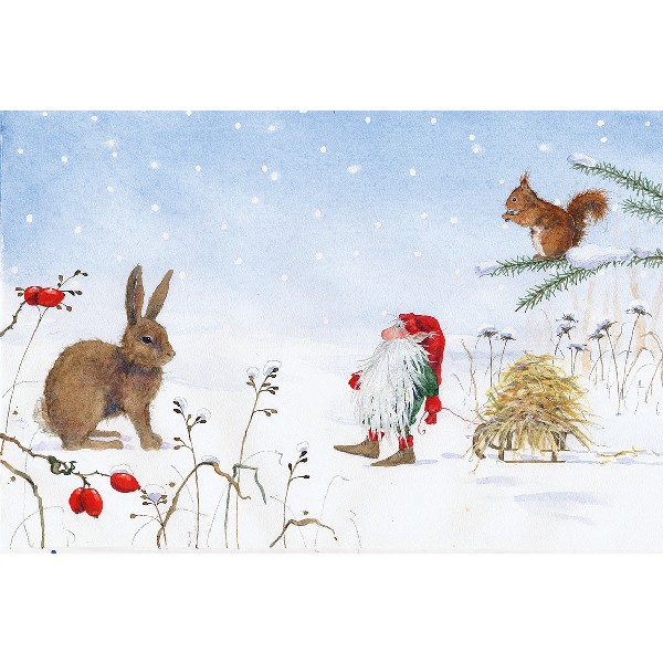 Ole Winterwicht stapft durch den Schnee und versorgt die Tiere mit kleinen Geschenken. Das Reh, die Maus, der Hase, alle werden sie von ihm bedacht. Und erst, als alle Tiere versorgt sind, begibt Ole sich nach Hause, um sich in gemütlicher Behaglichkeit für die Aufgaben des nächsten Tages auszuruhen.