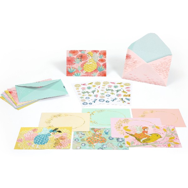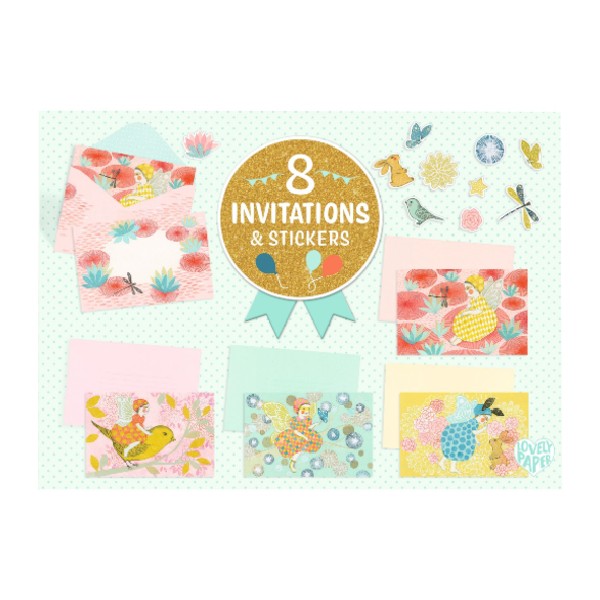* Inhalt: 8 Einladungskarten (4 Designs x 2) mit vorgedruckten Linien für eine klare und einfache Nachricht, 8 Umschläge (4 Designs x 2) und 2 Stickerbögen