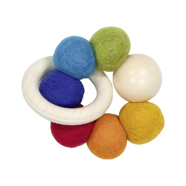 Bunter Greifling aus Holz und Wollfilz – erstes Spielzeug für kleine Entdecker – von Goki