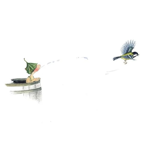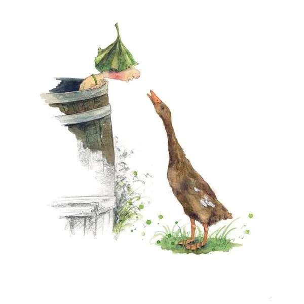 Eines Tages taucht Giesbert im Garten auf – an einem Tag, an dem es wie aus Kübeln schüttet.