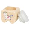 * Holz-Milchzahndose mit niedlichen Tiermotiv: Löwe, Wal, Einhorn, Dino