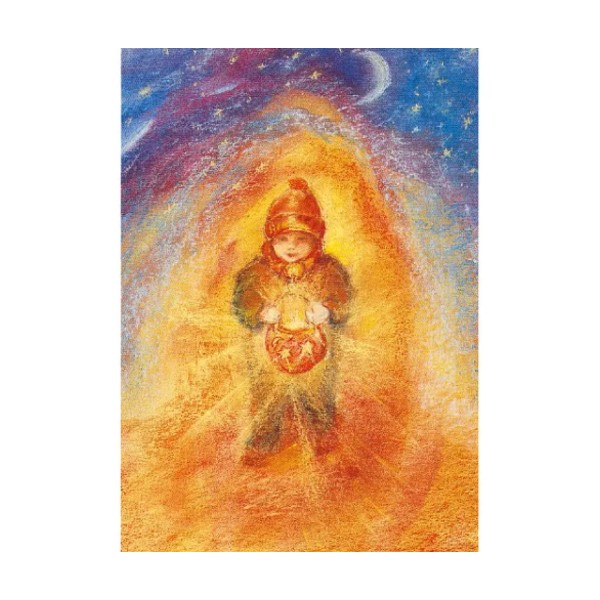 Die Postkarte „St. Martin’s Laterne“ von Marjan van Zeyl zeigt eine stimmungsvolle Szene rund um das Martinsfest. In leuchtenden, warmen Farben trägt ein Kind stolz seine Laterne durch die frühe Abenddämmerung – ein leuchtendes Symbol für Licht, Wärme und Gemeinschaft in der dunkler werdenden Jahreszeit. Die liebevoll gemalte Szenerie erinnert an die Tradition der Laternenumzüge und die Geschichte des heiligen Martin, die in dieser Darstellung besonders kindgerecht und poetisch eingefangen wird.