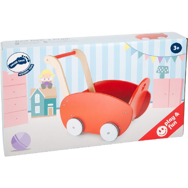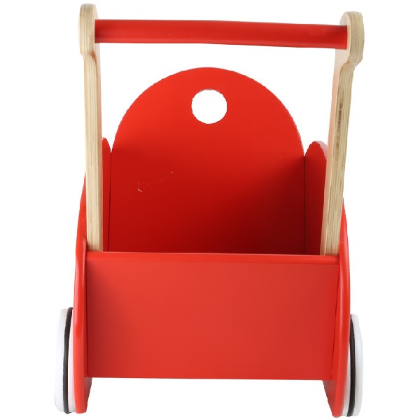 In diesem roten Puppenwagen fühlen sich alle Puppen wohl. Er ist aus strapazierfähigem Holz gefertigt und hält somit jeder Fahrt stand. Die Holzräder sind mit einem Gummiring ausgestattet. So fährt der Puppenwagen geräuscharm über alle Bodenflächen. Der Griff lässt sich von den Kleinsten gut greifen und fördert so das Gleichgewicht und das Laufen.