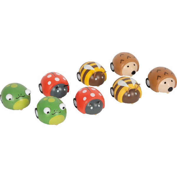 * klassische Rückziehfahrzeuge – ganz ohne Batterien, mit tierischem Design