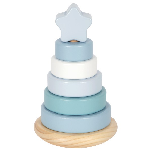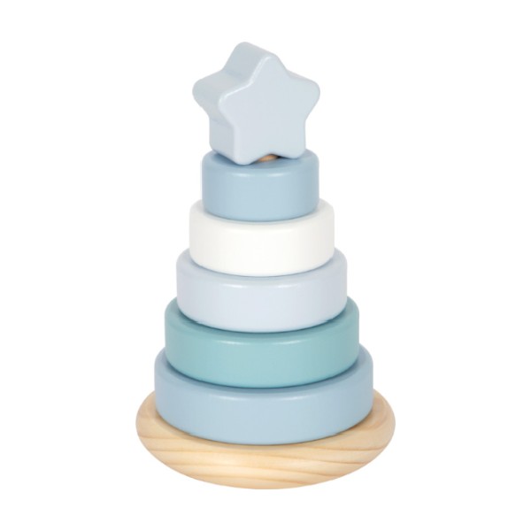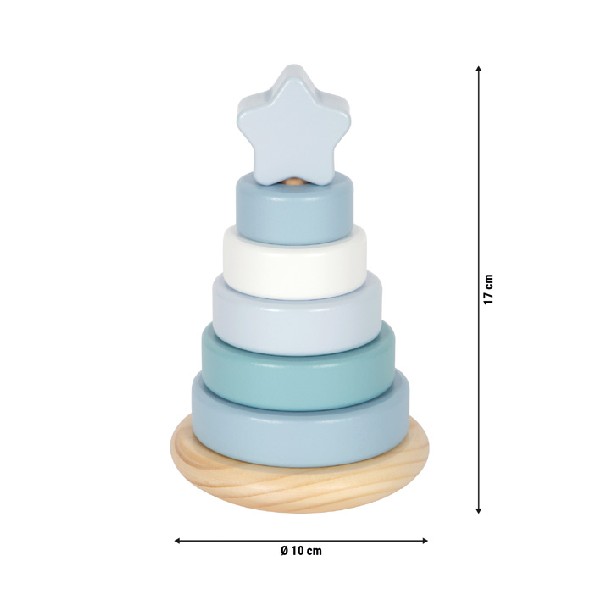 Ein stilvoller Hingucker für kleine Stapelfans! Dieser zauberhafte Stapelturm aus Holz wird von einem Stern gekrönt. Die harmonische Kombination aus zarten Pastelltönen, naturholzfarbenem Element und Weiß macht ihn zu einem besonderen Hingucker im Kinderzimmer. Mit verschiedenen Stapelringen in abgestuften Farbtönen fördert er Feinmotorik, Konzentration und das Erkennen von Größen. Ob als Lernspielzeug oder dekoratives Element – dieser Stapelturm vereint Funktionalität mit Design und ist ein ideales Geschenk zur Geburt oder Taufe. Mit abgerundetem Boden, der den Stapelturm lustig hin und her schaukeln lässt.
