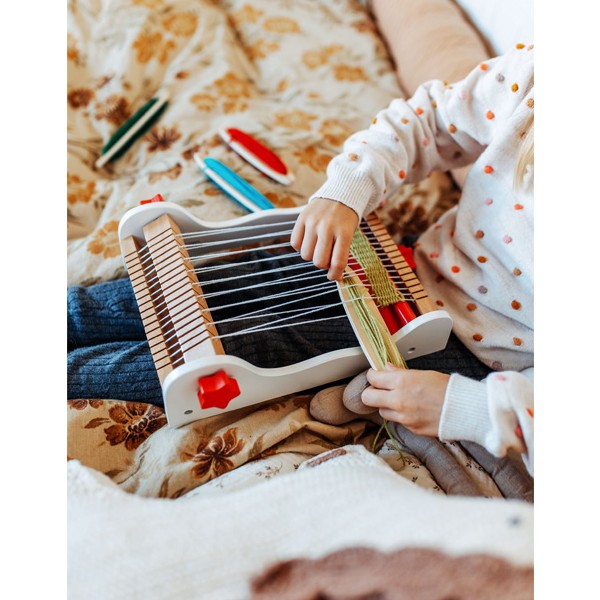 Durch die besonders einfache Handhabung des Erstwebrahmens kann sofort mit der ideenreichen Arbeit begonnen werden. Ein toller Webspaß, der die Kreativität fördert und gleichzeitig die Fantasie anregt.